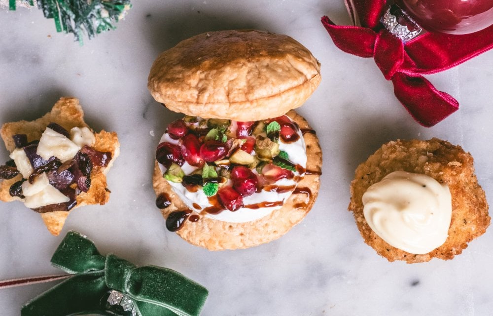 We hebben een crispy brioche crostini met romige brie en zoete ui (yes please), crunchy kastanjechampignons met truffelmayo (vega en verslavend lekker) én mini burratine tompouces die zó cute zijn dat je bijna vergeet dat ze ook nog heerlijk smaken. Kerststress? Niet met dit trio hoor.
