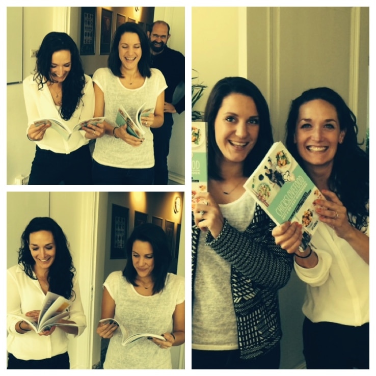 Het kan zijn dat je ons boek al hebt gezien, iedereen die ‘m bij Bol.com heeft besteld, had ‘m namelijk vrijdag in huis, primeurtje! Heel leuk, we kregen al van een aantal lezeressen en foodbloggers (ook de pers heeft het boek iets eerder gekregen) kiekjes doorgestuurd van het boek. En helemaal tof; inmiddels ligt -ie ook in de Bijenkorf, bij sommige Albert Heijns en bij een heleboel boekhandels. Hij is dus écht te koop! Hierboven zie je nog even hoe blij wij waren toen we ons eerste boek vasthielden :D.