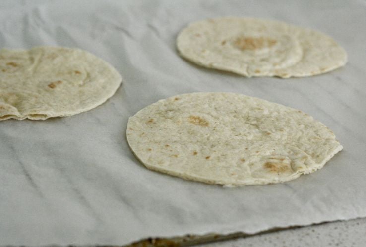– Besmeer de wraps met wat tomatensaus, gevolgd door wat geraspte belegen kaas.