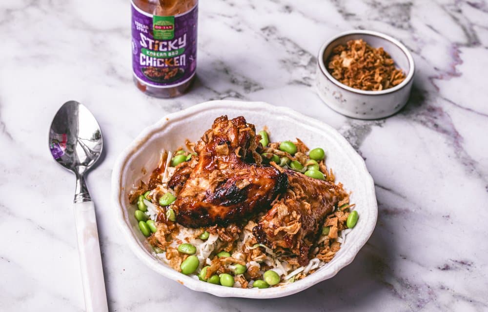 We gebruiken de Sticky Chicken Korean-style BBQ saus van Go-Tan, die de kip meteen die zoete en hartige Koreaanse smaak geeft waar je geen genoeg van krijgt. Tijdens het bakken karamelliseert de saus mooi om de vleugeltjes en worden ze heerlijk sticky. Samen met knapperige gebakken uitjes, frisse groenten en een kom warme rijst heb je in een half uurtje een complete bowl vol comfort food op tafel.