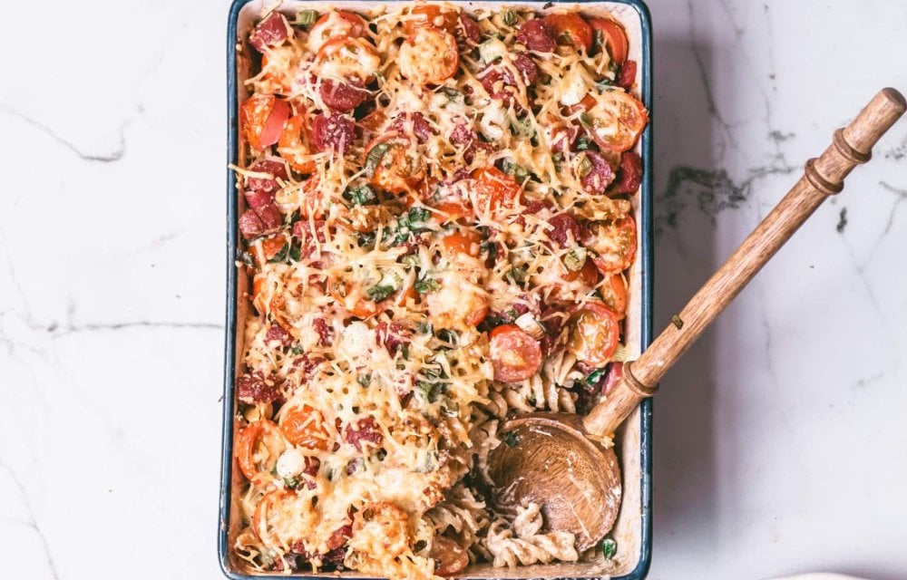 Wat we er zo top aan vinden: het is zo’n gerecht dat alles heeft. Zout van de worst, fris van de tomaatjes, romig door de mascarpone en net dat beetje bite van de bosui. Echt zo’n pasta waar je blij van wordt na een drukke werkdag. Of als je gewoon niet zoveel zin hebt om te koken maar wél iets lekkers wil.