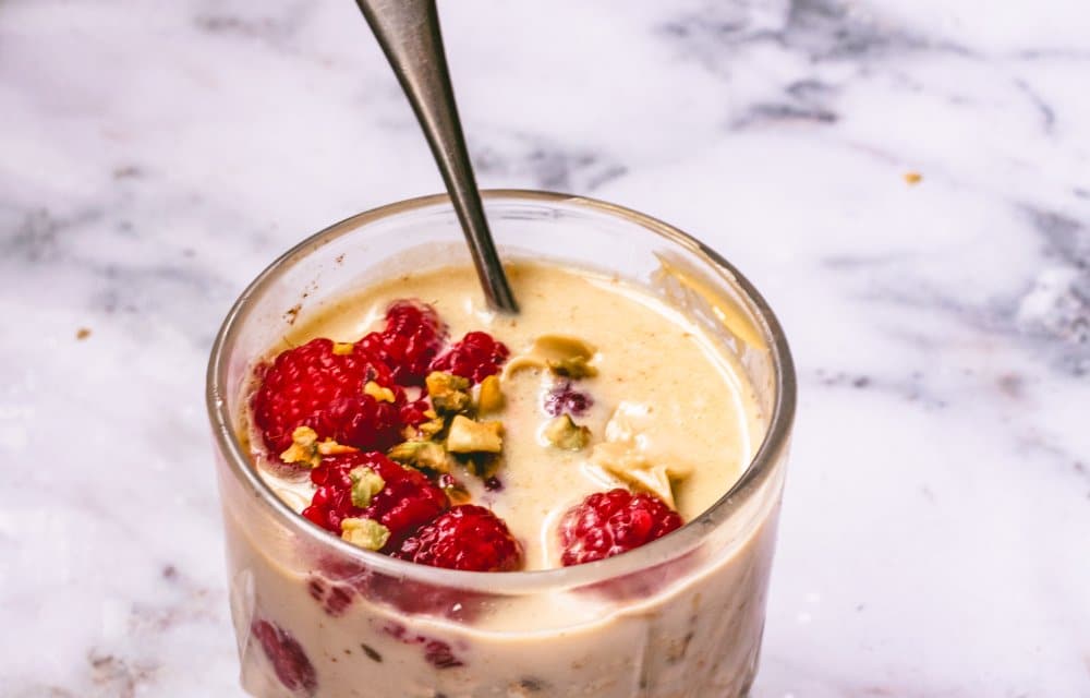 Ontbijtjes die je ’s avonds al klaarmaakt zodat je de volgende ochtend alleen nog hoeft te genieten… wij zijn fan. Overnight oats zijn daarom een absolute topper: voedzaam, makkelijk en eindeloos te variëren. Deze versie met pistache is echt een pareltje. Romig, licht nootachtig en extra lekker met frambozen en een crunchy topping van pistachenootjes. Wedden dat deze pistache overnight oats je nieuwe favoriete start van de dag wordt?