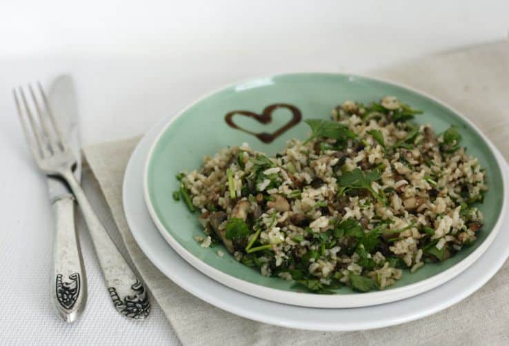 Dus bedacht ik deze restjessalade: neem je restjes kruiden en groenten van de feestdagen, bak even op en meng met wat zilvervliesrijst en balsamicoazijn. Zo heb je in no time een skinny salade waarmee je zo tussen de feestdagen het feesteten kan compenseren. Én je hoeft niks weg te gooien. Ook fijn.