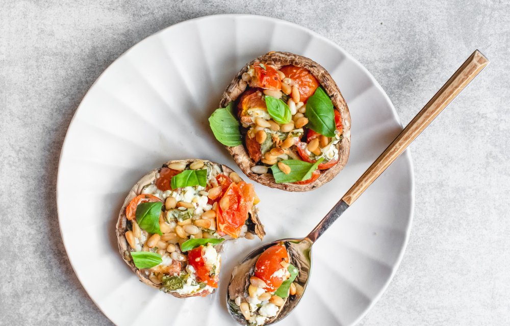 Last but not least.. gevulde portobello’s! Zo ideaal, je kunt portobello’s echt met van alles vullen. Eventjes in de oven, en hoppa, je easy diner is klaar! In dit recept vullen wij ze met cherrytomaatjes, knoflook, basilicum, cottage cheese en pijnboompitten. Deze caprese variant is gezond, eiwitrijk en gewoon harstikke lekker. Proberen dus!
