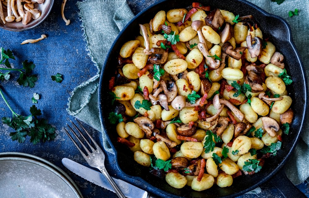 Herfstiger dan dit kan bijna niet, toch?! Dit heerlijke, verwarmende maaltje bevat maar 5 ingrediƫnten. Wat paddenstoelen, spekjes, ui, gnocchi en peterselie en je bent er! Heerlijk die combi van paddenstoelen met de zoute, gerookte spekjes. Eet je liever vega? Vervang dan de gerookte spekjes voor reepjes halloumi!