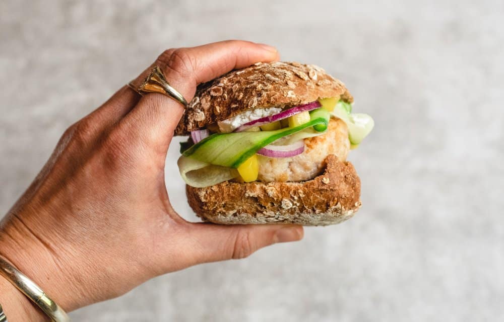 Als er bij ons burgers op het menu staan, maken we die ‘t liefst helemaal zelf. Zo ook bij deze gezondere kipburgers met mangosalade.